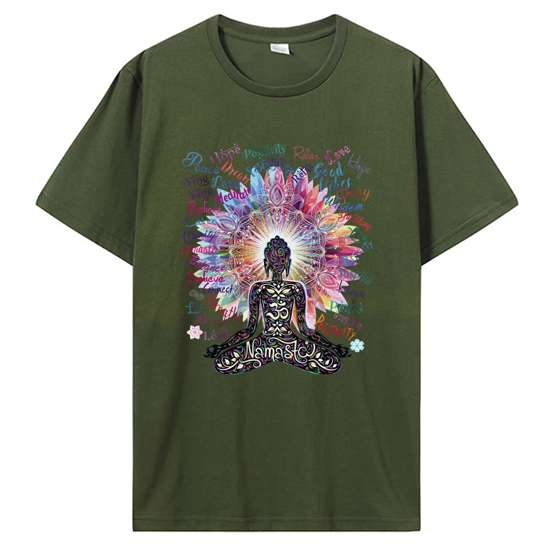 Embrace tranquility and positive vibes with our men's Buddha T-shirt, featuring a vibrant and uplifting design that promotes inner peace and mindfulness. Made from soft, high-quality cotton, this T-shirt ensures exceptional comfort and durability, making it perfect for yoga sessions, meditation, or casual everyday wear. Ideal for those who seek spiritual growth and a stylish way to express their positivity, this shirt is a must-have addition to your wardrobe.